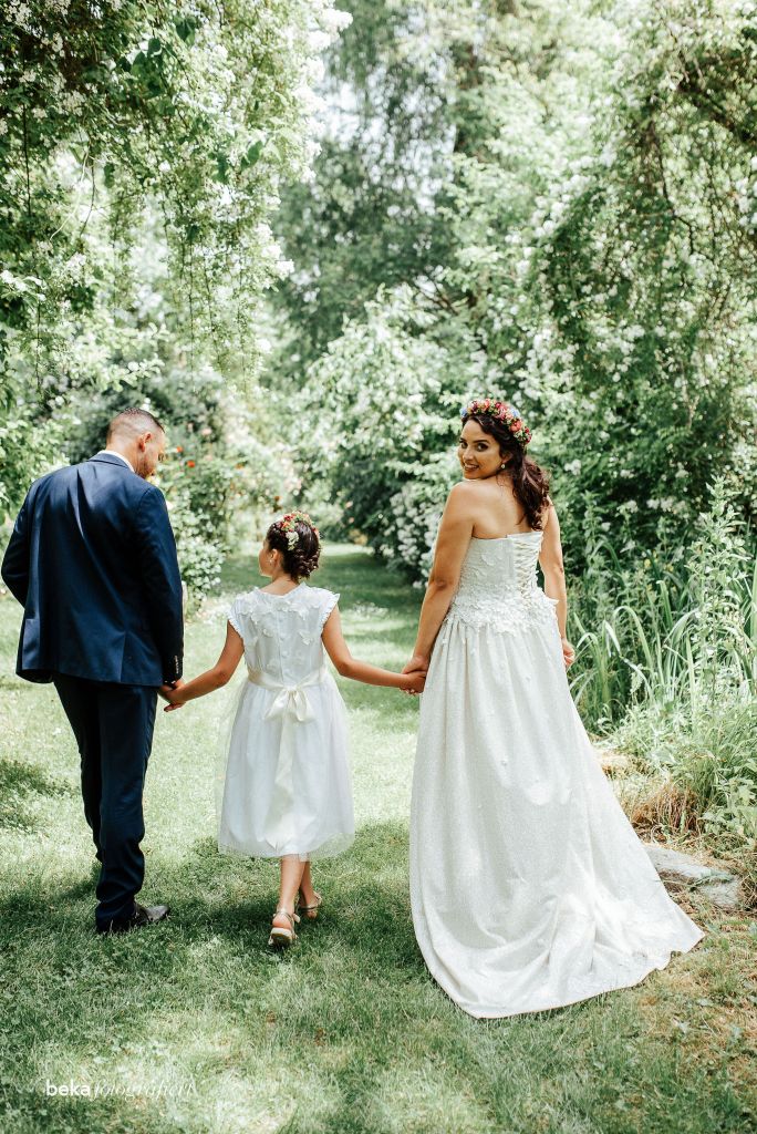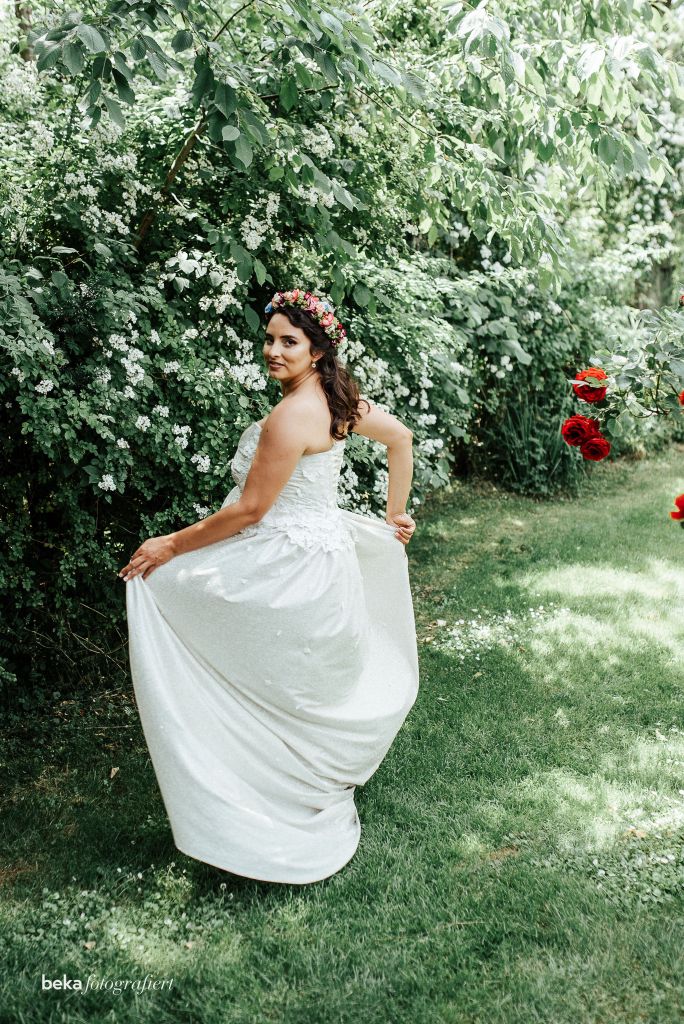 The location is perfect for a boho bride, in a beautiful rose garden on a sunny summer day in June.