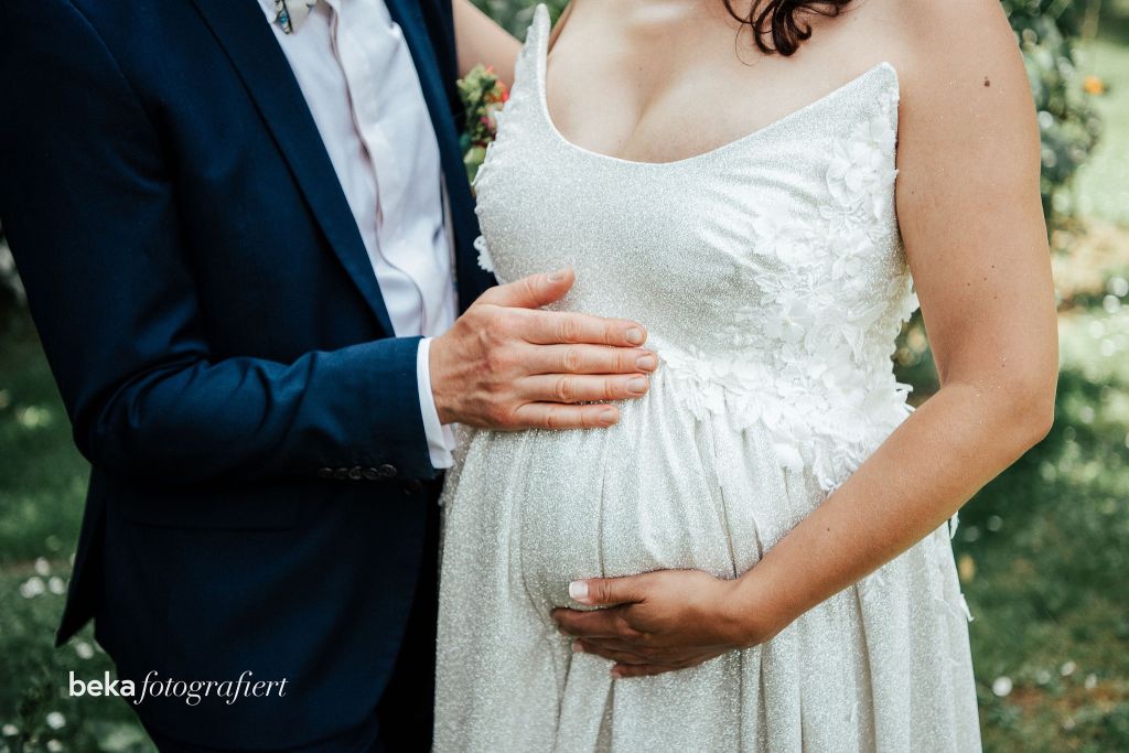 The innocent look isn’t really appropriate for a pregnant bride who is going to be a mother for the second time.